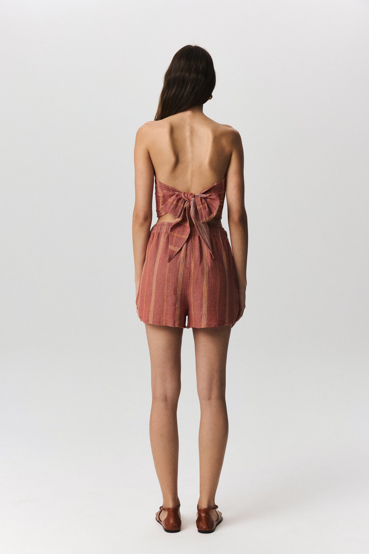 Şort ölçülerinde bel, basen ve boy esas alınır. Ölçüler düz zeminde alınmıştır. Kadın model boyu 1.78 cm, göğüs ölçüsü 75 cm, bel ölçüsü 60 cm olup model üzerinde 1 beden (S-M) kullanılmıştır.