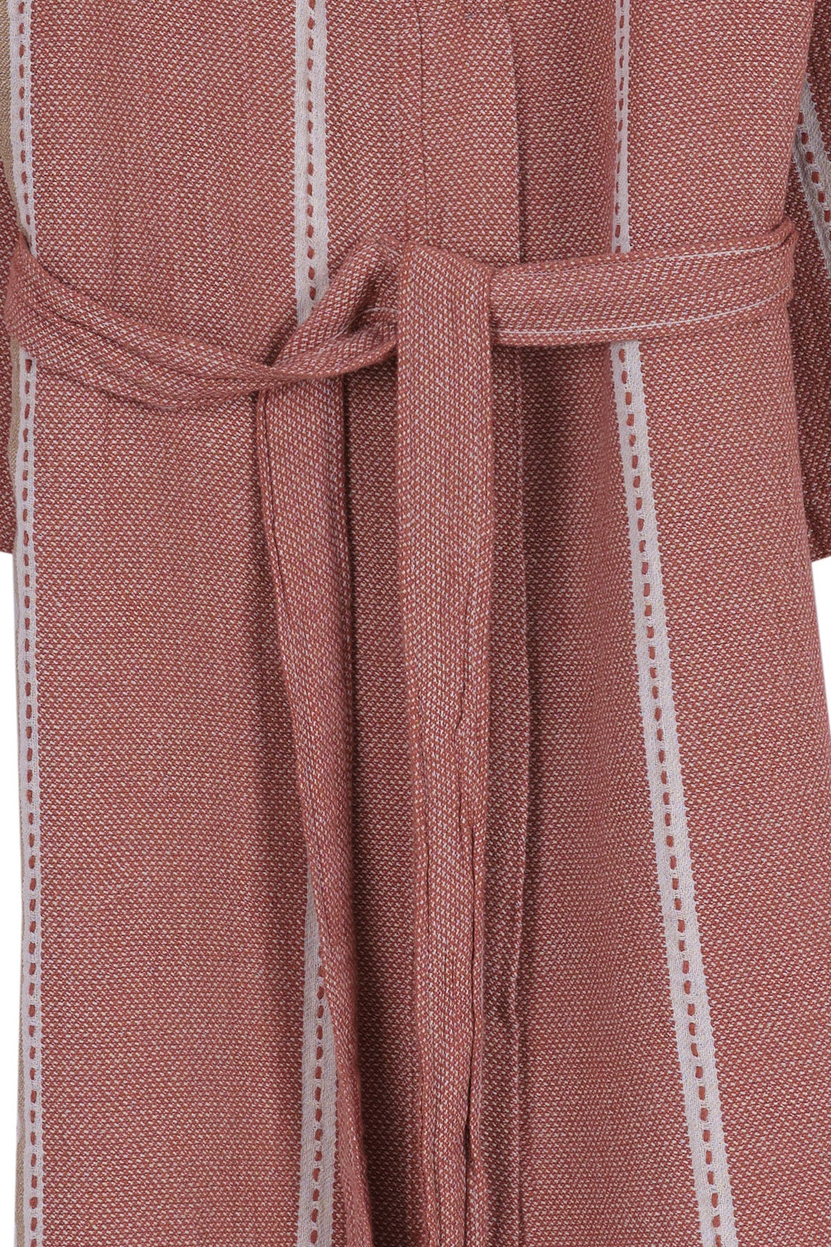 Arinna keten bornozu diğerlerinden ayıran şey, her şey ile kombinlenebilir oluşudur. Bornoz rolünün ötesinde, zahmetsizce şık bir seçim sağlayan Arinna bornoz, serin yaz akşamları ve plaj için de hafif bir kimonoya dönüştürebilirsiniz. Üzerindeki desenler, dokular ve canlı renkler, Türk kültürünün zengin mirasının ve sanatsal işçiliğinin bir kanıtıdır