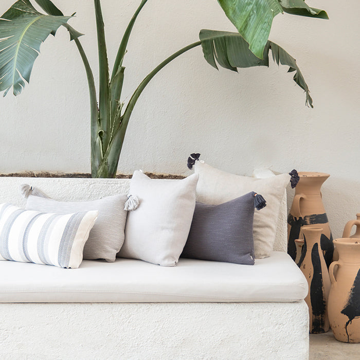 Kontrast iplikle bağlanmış el yapımı ponponları, tasarıma ince bir vurgu ekler. %100 pamuk kumaşı doğal ve oturmuş bir his verir; hem yaşam alanlarında hem de yatak odalarında bulunduğu mekânı tamamlayan bir duruş sergiler. Arka yüzündeki gizli fermuar, formun bütünlüğünü korur. Capella, dekorasyonda sessiz ama karakterli bir eşlik sunmak üzere tasarlandı. Kırlent içsiz gönderilmektedir.