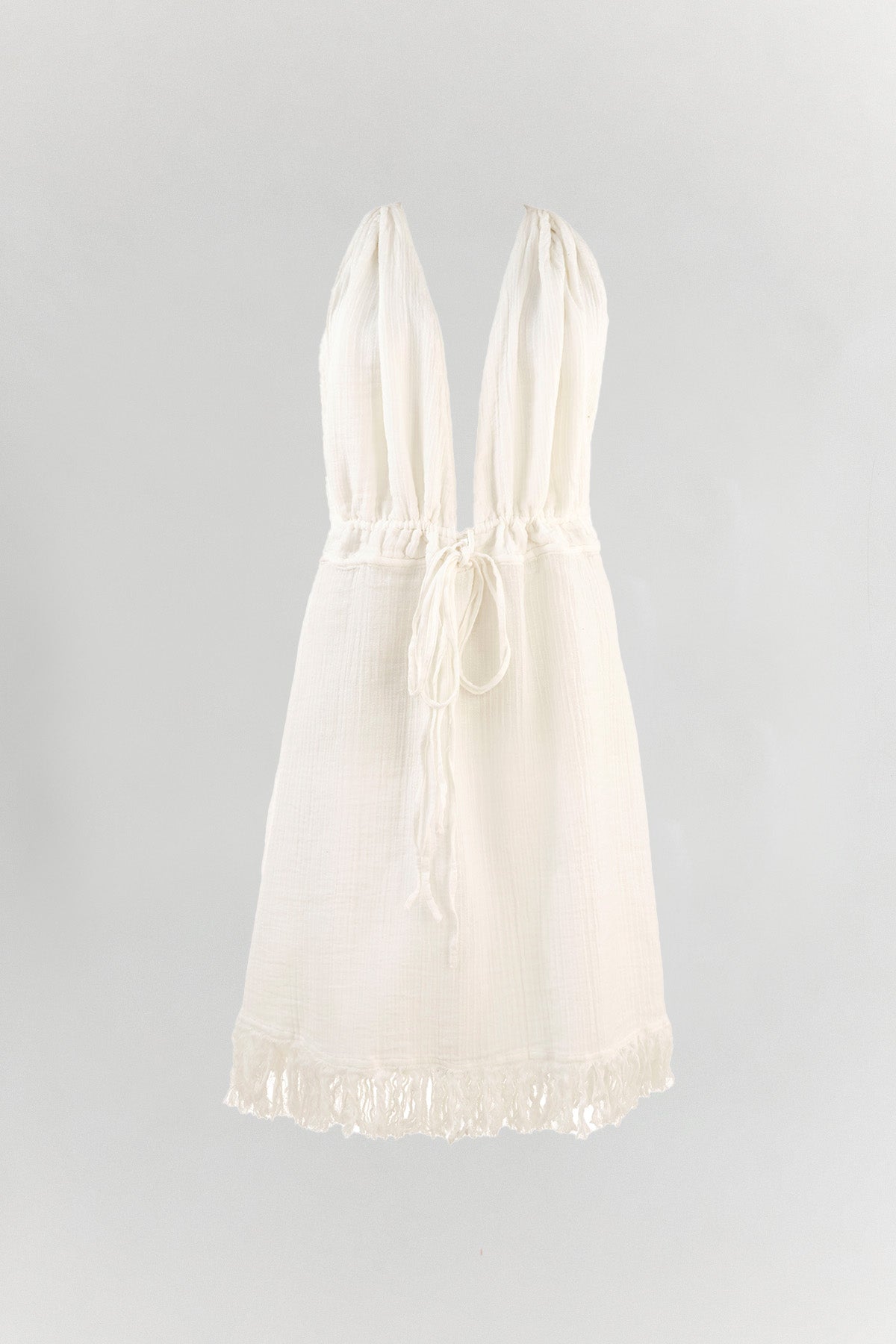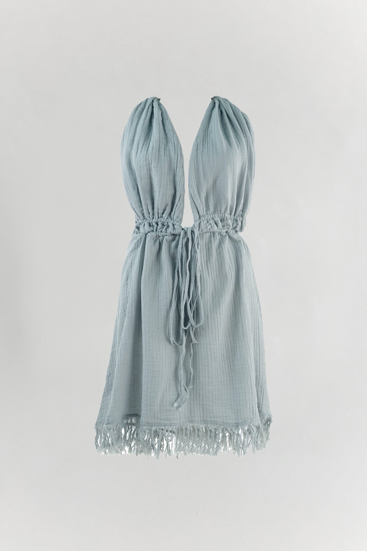 %90 pamuk ve %10 keten karışımıyla hafif, nefes alabilen ve zarif bir dokunuş sunan Carmin Elbise, doğallıkla gelen şıklığı temsil ediyor. Ön kısmındaki bağcık detayı ve püsküllü etek ucu, bohem ruhunuzu ortaya çıkarırken, rahat kesimi her adımda özgürlüğü hissettiriyor.
