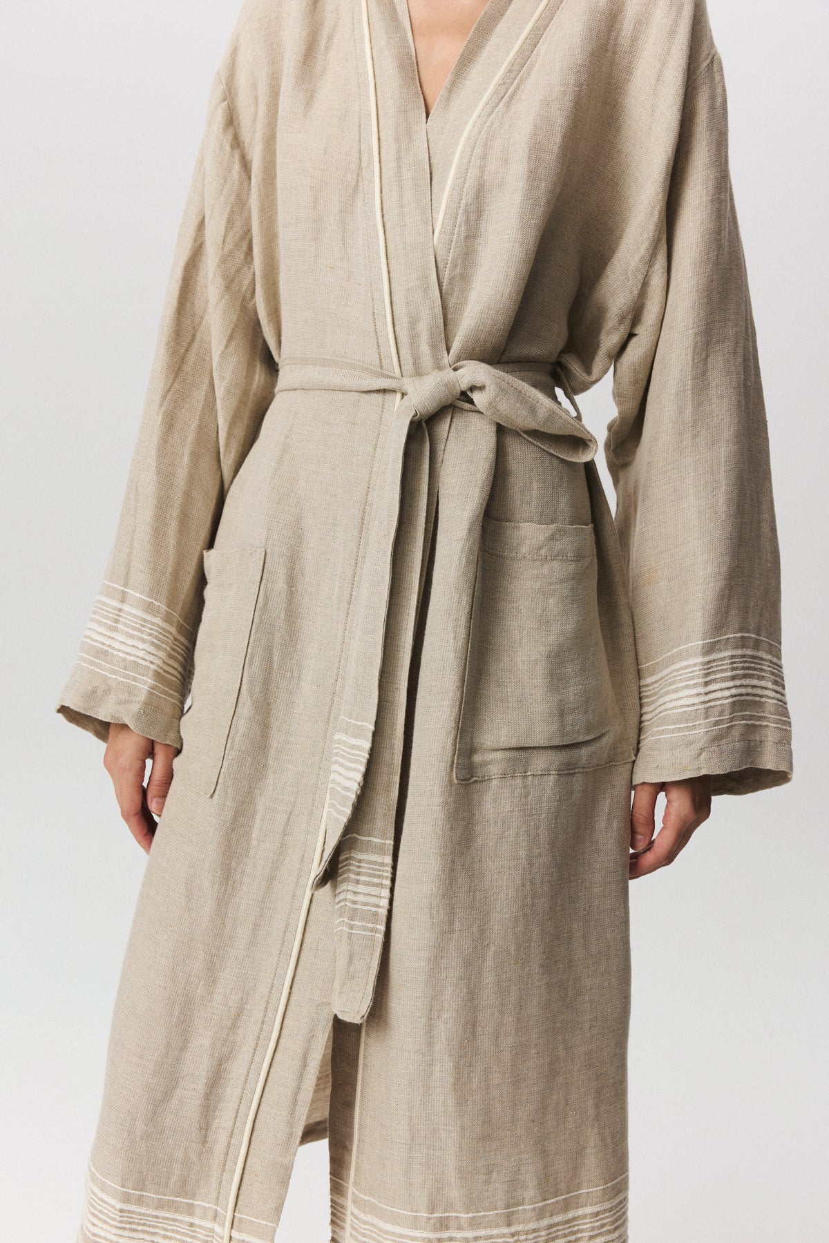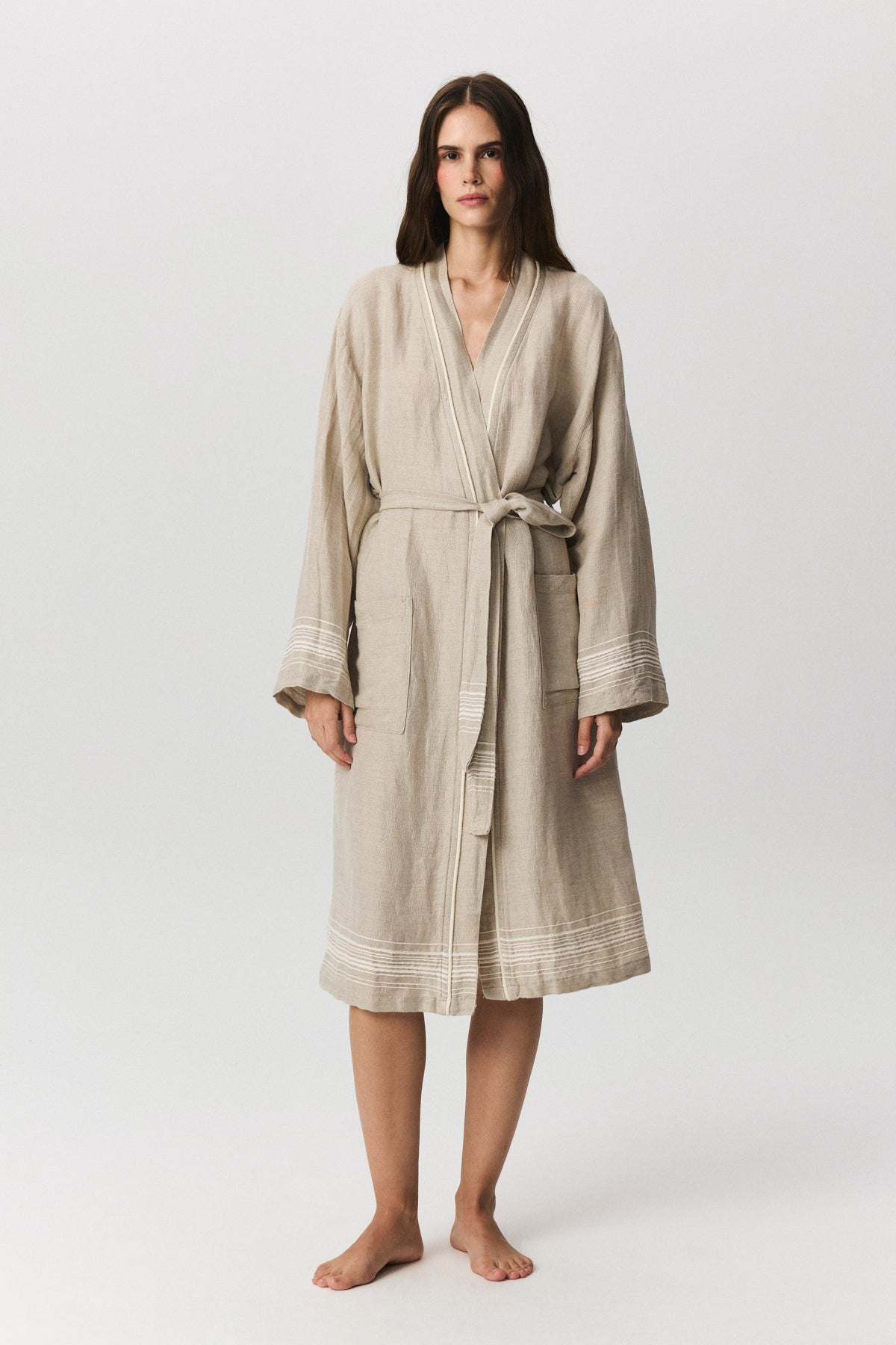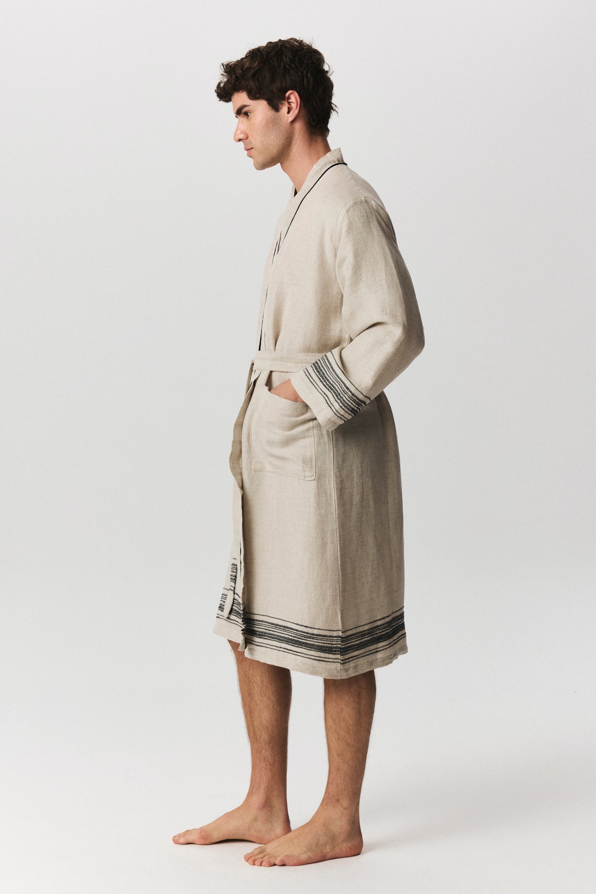 Marl serisi, keten ve pamuk karışımlı doğal dokusuyla banyodan plaja uzanan çok yönlü bir kullanım sunar. Buldans’a özel tasarlanan bordür detayları, elde dokunmuş hissi veren karakteristik bir görünüm oluşturur. Ön yıkamalı keten dokusu sayesinde kumaş yumuşak bir tutum kazanır ve kullanım sırasında doğal bir konfor sağlar. Nefes alan yapısı ve hafifliği sayesinde hızlı kurur ve günlük kullanımda pratiklik sunar. Seri; bornoz, peştemal ve peşkir seçenekleriyle bir bütün olarak tasarlanmıştır. Zamansız çizgileri ve doğal dokusuyla sade ama güçlü bir banyo–spa koleksiyonudur.