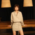%100 keten dokusu, doğallığın en saf halini teninize taşırken, parlak ip detayları elbisenin zarafetini vurguluyor. Gömlek ve etek tasarımının beldeki bağcıklarla kusursuz birleşimi, hareket kabiliyetini özgürleştirirken, stilinizi de benzersiz kılıyor.